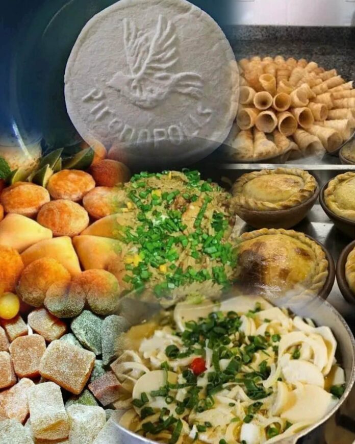 Entre os destaques, a Verônica de alfenim chama atenção: doce delicado em forma de pomba, símbolo do Espírito Santo, produzido artesanalmente e carregado de significado.