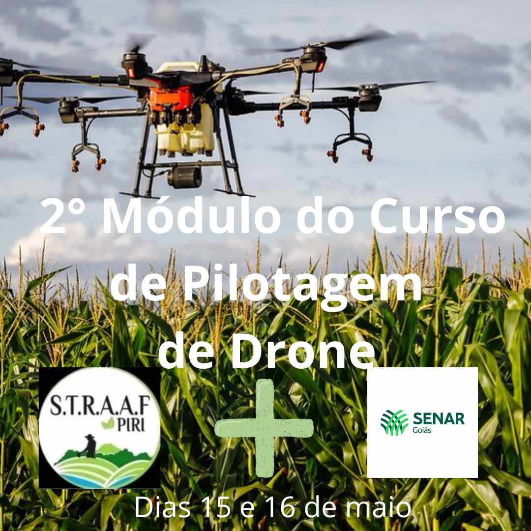O Sindicato dos Trabalhadores Rurais Agricultores e Agricultoras Familiares de Pirenópolis (STRAAF) em parceria com o Senar Goiás irão disponibilizar o segundo módulo do Curso de Pilotagem de Drone, nos dias 14 e 15 de maio, iniciando na próxima quinta-feira, na sede do STRAAF. Faça sua inscrição no endereço: Avenida Prefeito Sizenando Jayme, 19, ou pelos telefones: 3331.1125 – 98535.5513 e E-mail: sttrpirigo@hotmail.com.br.