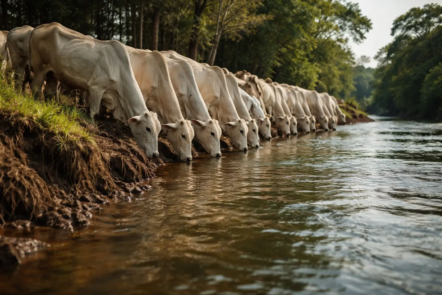 A cena é comum em milhares de propriedades rurais no Brasil: o rebanho descendo até o rio para matar a sede. O que muitos produtores ainda não sabem é que essa prática pode gerar multa mínima de R$ 5.000 por hectare, embargos da área e até responsabilização criminal — dependendo de como ela é conduzida. O ponto central não é se o gado pode ou não beber água no rio. A questão é como isso está sendo feito.
