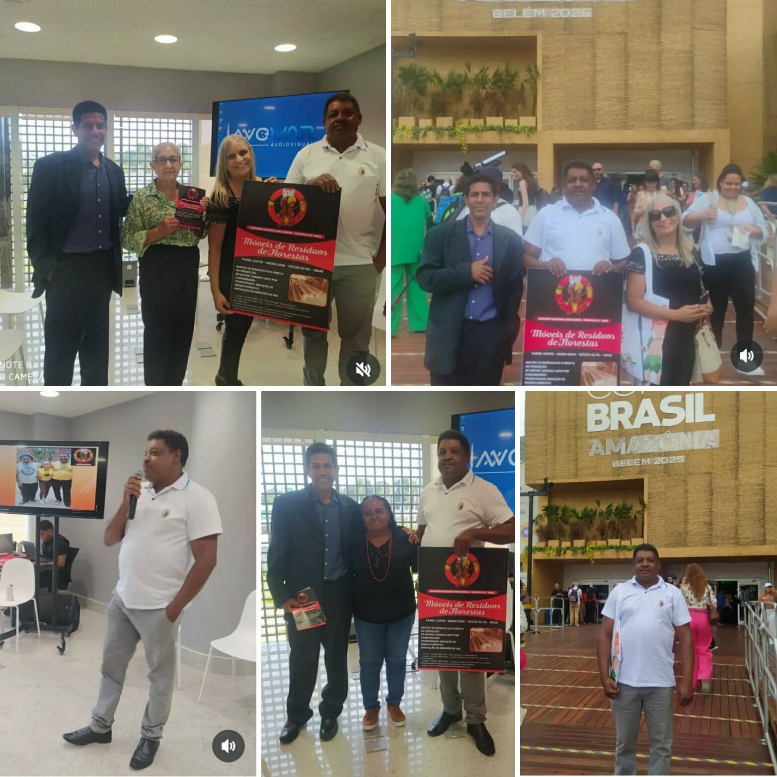 Móveis de resíduos de florestas, troncos de árvores condenados, caídos que se transformam em lindos móveis rústicos, confeccionados pela comunidade Quilombola Santa Barbara de Pirenópolis foram destaque na COP30