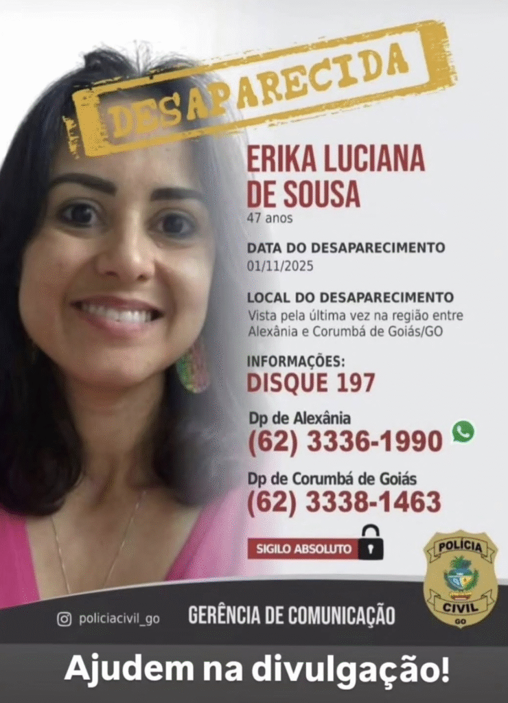 A família relatou que a última comunicação com Érika foi no sábado pela manhã, quando ela informou estar em Corumbá lidando com a questão do veículo. Apesar da viagem planejada para a casa do pai no dia seguinte, ela não chegou ao destino conforme o previsto. A investigação continua para esclarecer o desaparecimento da biomédica.
