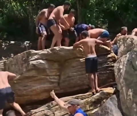 • Resgate: Turistas e um guarda-vidas local iniciaram os primeiros socorros antes da chegada do helicóptero do Corpo de Bombeiros.